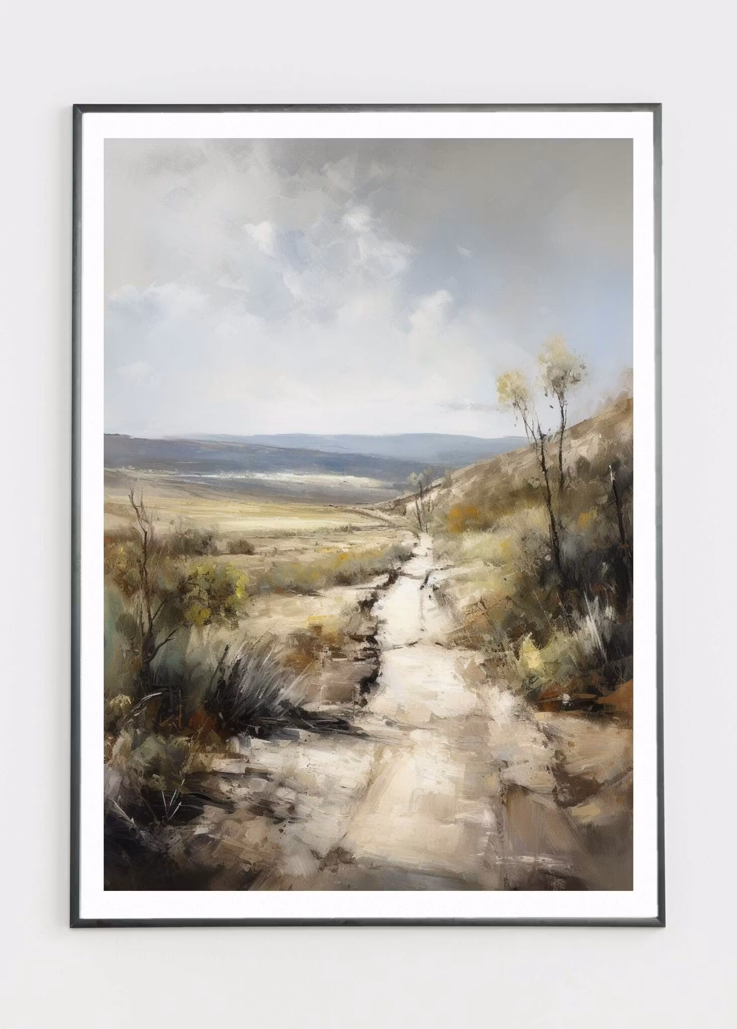 Viktor Johanssons oljemaleri avslører et øde og vidstrakt landskap som bærer på en følelse av ensomhet og tidløshet. Hans dyktighet i å blande skygger og lys gir verket en atmosfære av ro og introspeksjon. Maleriet formidler en stillhet som lar betrakteren fortape seg i skjønnheten og stillheten i det fjerne landskapet.