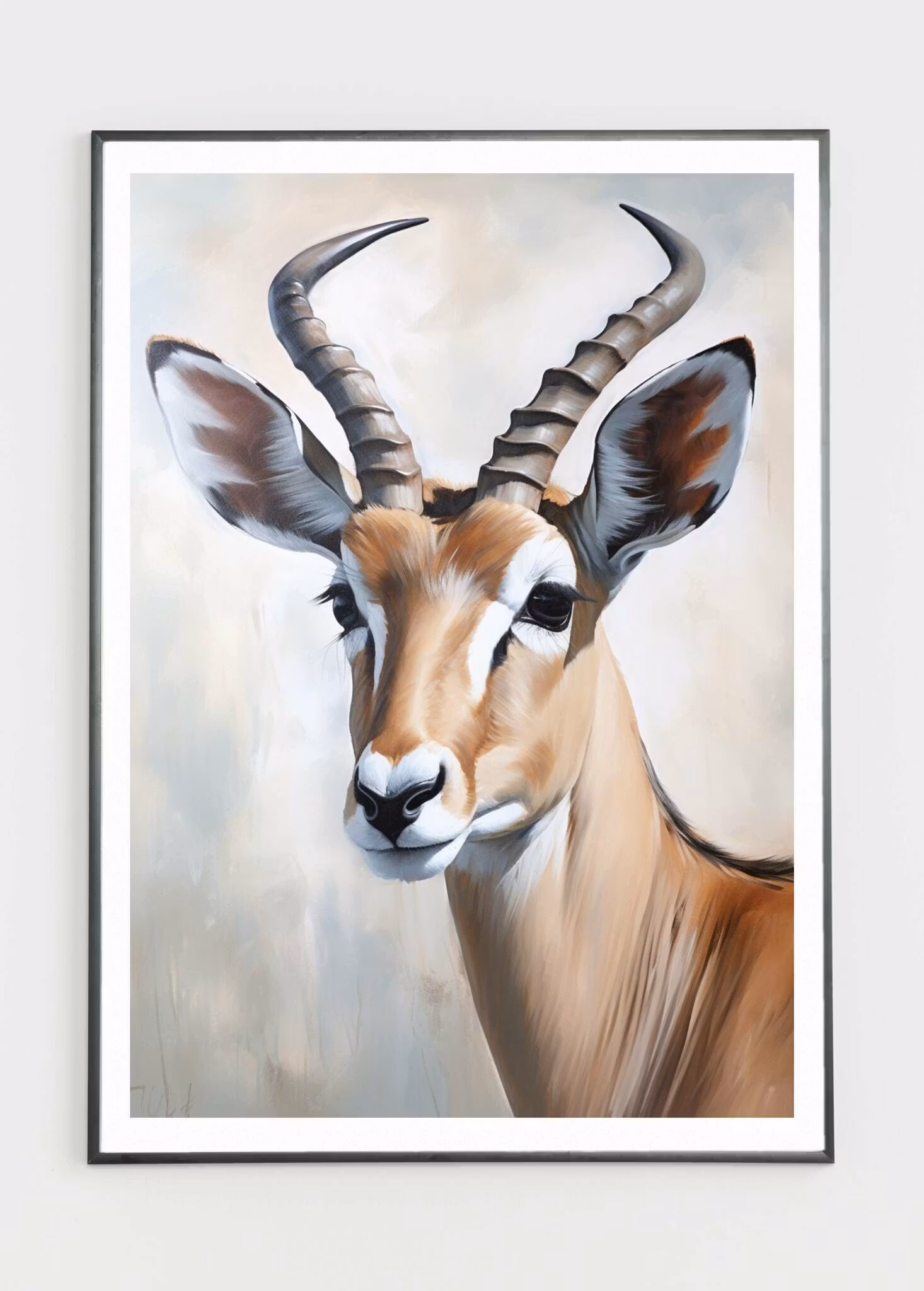 Elin Anderssen oljemaleri gir liv til et stilisert bilde av en impala med kraftige trekk. Kunstverket er en hyllest til dyrets ynde og letthet. Med en minimalistisk palett og presise linjer skaper Andersson en tidløs representasjon av impalaen, hvor enkelhet fremhever dens naturlige skjønnhet og eleganse.